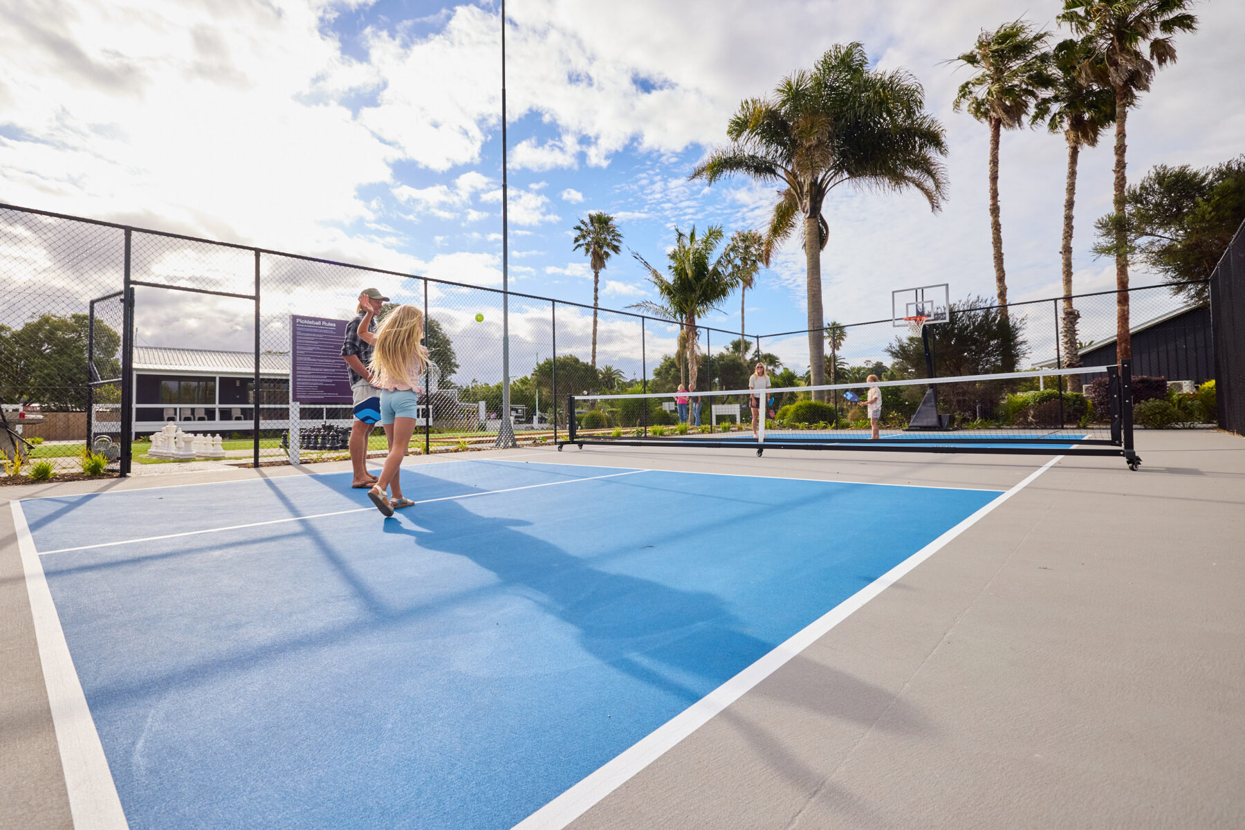 Once you roll in, there’s plenty to keep everyone entertained. Soak it up in our hot mineral pool or book yourself a private hot tub and let the world drift away. Challenge the kids (or your competitive mate) to mini golf, frisbee golf or a giant outdoor chess showdown. Bring the bikes for the BMX track, test your skills on the skate ramp, or serve up a hit on the pickleball court.